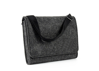 Die Tagungstasche aus dem Trendmaterial Filz. Die offenen Nähte und die mehrfarbigen Logoaufdrucke geben der Tasche das zusätzliche Extra. Die Klappe ist mittels Klettverschluss fixierbar, ein zusätzliches Einsteckfach mit ausgestanztem Schlitz schafft Ordnung.