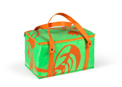 Aussen: Grünes Nylon mit 1-fbg. Siebdruck.